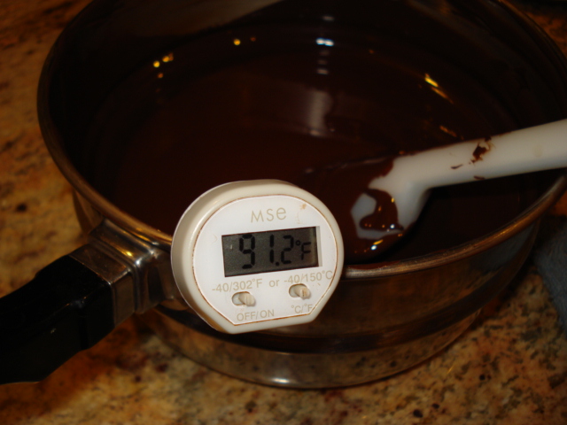 For all you chocolate lovers out there, this melted mass is not quite in temper, but it’s close. Depending on the chocolate manufacturer, it could be in temper, but generally speaking 91 degrees is still a bit warm for dark chocolate. How do I know? I was a chocolatier for the last seven years and I learned a lot about process. Now I’m learning a lot of other processes.