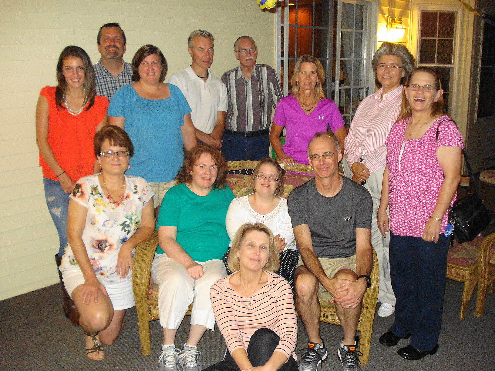 The same day that family photo was taken in August, I got home to a surprise birthday party – a week before it was my birthday. My local and regional friends showed up. My friend Patti, in particular, helped my hubby plan this little surprise. The funny thing was, I accidently found out about it a day before. I struggled with what to do. I can keep a secret, and I have some I’ve kept, but this one was hard for me, because it was for me. When we turned onto our street, and I saw my friend Melanie’s car, I nearly lost it. And when we got into the garage, I couldn’t keep it the secret from my hubby anymore. I started to cry. I have a duplicate of this picture with the person who is behind the camera. His name is Tom. His family is close to ours, especially since both he and his wife are runners, like Kirby.