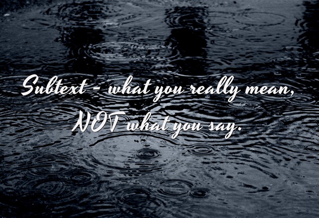 This lesson will be a challenge for me, because although I understand the concept, I’ve not used it as much in my writing. Subtext––is what’s really meant, not what’s said. Click to Tweet #amwriting #storyfixing