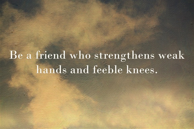 Thank you all for reading this blog. It’s my hope that the Tuesday post will be encouraging, uplifting, and inspirational. I’ve got some guest bloggers coming soon to the Tuesday post. But for today, I’m sticking with Revelations & Friendships. A friend encourages and supports. Be a friend today and strengthen the feeble knees and weak hands. Click to tweet #friendships #revelations