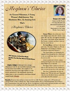 On my website, I have a page called Meghan’s Choice. That’s basically my Internet one-sheet. But here’s what it looked like when I met with agents and editors a couple years ago.