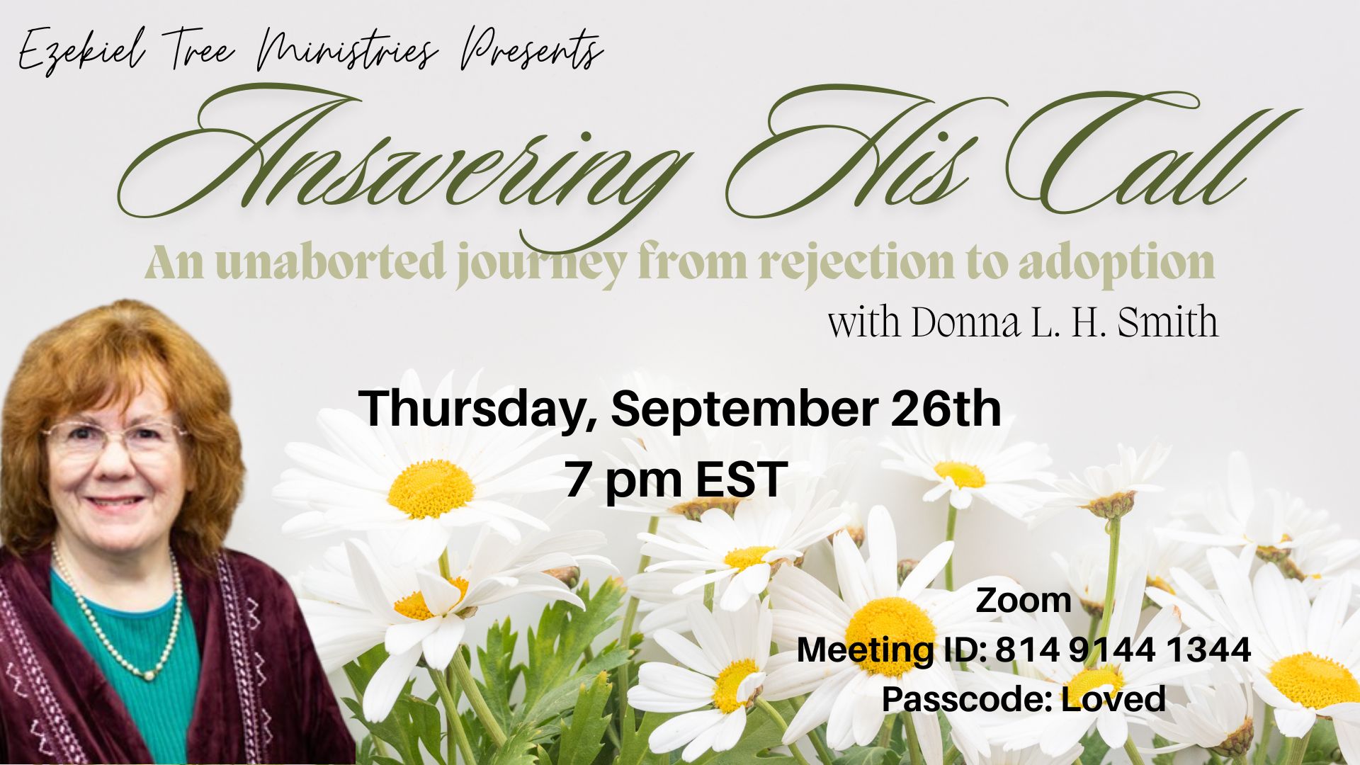 This event is sponsored by Ezekiel Tree Ministries, founded by my wonderful GATS seminary friend, Beth Irwin, who has a wonderful testimony as well.
